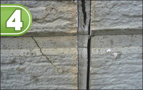 ひび割れ現象 ヒビ割れが起こる要因はモルタルが乾燥していく過程で、必ず縮んでいくという物理的性質があるからです。雨が降るたびにクラック内に雨水が浸水します。クラック内に雨水が入り込むと腐朽菌やカビの繁殖が起こり建物の構造体を痛めること繋がります。そうなる前に早めの補修工事をおすすめします。 |
