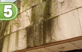カビ・藻の発生 建物の北側は日当たりが悪くカビが発生しやすい面です。ご自宅の周辺に木々が近い場合は湿気が高く、すぐに真っ青な外壁になるので特に注意が必要です。カビが発生すると見た目も悪く外壁の寿命も短くなります。年に1回の洗浄を行うことにより建物の寿命も延びます。 |