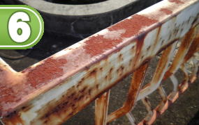 鉄部のサビ 錆び止め塗装を使うことにより水や空気の浸入を軽減します。ケレン(剥がれかかっている旧塗膜や錆を落とす作業のこと)を施しサビを落とします。特にサビがひどい箇所は塗料を何度も重ねて肉厚な塗膜を付けて仕上げます。 |