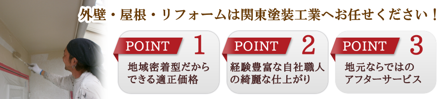 関東塗装工業は、埼玉県坂戸市を中心に関東一円で外壁塗装、屋根塗装、大規模修繕工事などを手がけています。