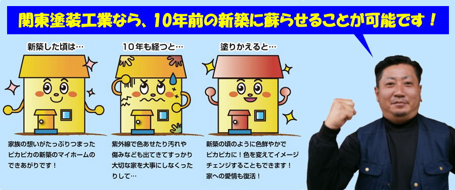 「関東塗装工業」は、埼玉県坂戸市を中心に関東一円で外壁塗装、屋根塗装を手がけている塗装のプロフェッショナルです。